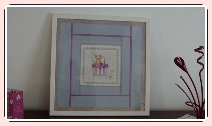 A force de feuilleter et de fureter sur le net j'ai fini par trouver la méthode et la jolie façon de le mettre en valeur, je dois dire que c'est le plus simple des encadrements que j'ai pu faire (mais il m'a demandé beaucoup de réflexions parce que je n'ai aucune base dans ce domaine !!!!).