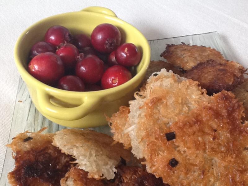 -250g de noix de coco râpé -200g de sucre -25g de beurre -2 jaunes d’œufs Mélanger le coco râpé,le sucre,puis les jaunes et enfin le beurre fondu. Bien mélanger. Faire des boules les placer sur une plaque et cuire 10mn à four 180°. Laisser refroidir avant de démouler. Déguster
