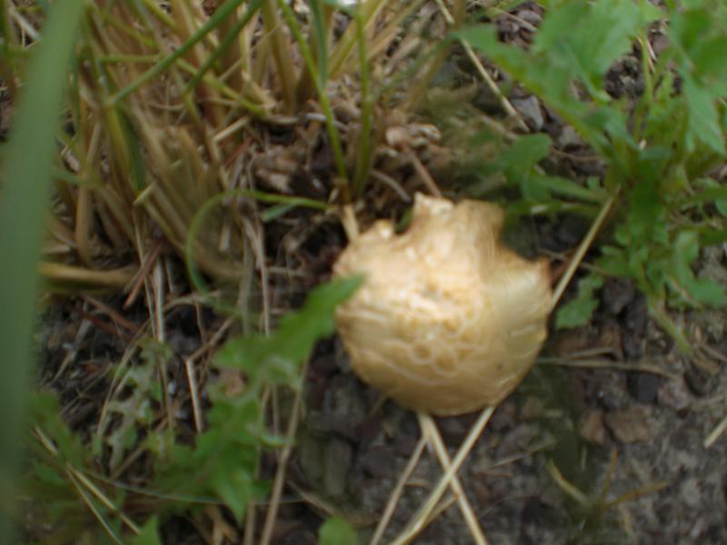 bien sûr c'était un champignon mais .... en juin avec cette forme là et cet aspect ... bizzarre ! (ben oui il a plu et beaucoup plu, c'est la fête à champi ! C'est Sylvie (des bons restaurants) qui a trouvé la première !) bravo ! et il avait un petit en forme de coquille st jacques !!