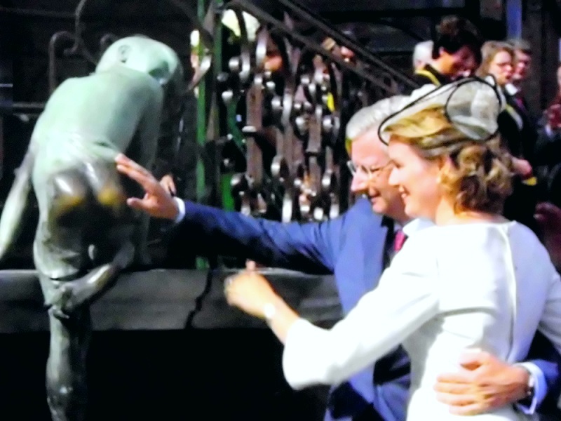 Et, une joyeuse entrée surprise ! les souverains saluent une dernière fois tous les Belges depuis le balcon de l'Hotel de ville de Bruxelles.