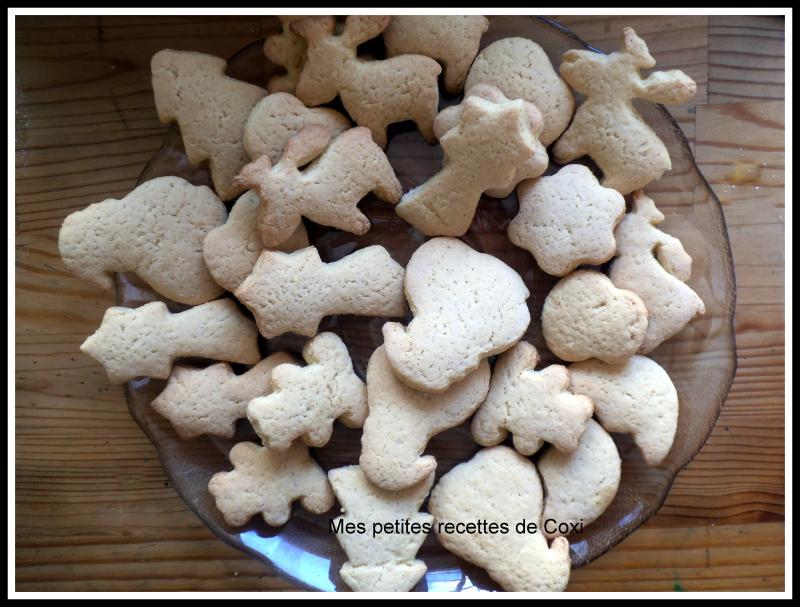 600 g de farine 250 g de sucre 3 oeufs battus 125 g de beurre à température ambiante 1 sachet de sucre vanillé 1 sachet de levure chimique 1 pincé de sel Préparation : Pour avoir la bonne température du beurre le sortir du frigo 1 h avant en le mettant dans une assiette dans le vaisselier . Dans un saladier ,mélangez le beurre avec la farine ainsi que le sucre . Versez-y les oeufs ,le sel et les sachet ,mélangez là le totu à l'aide de vos mains pour obtenir une pâte bien souple et homogéne . Mettre au réfrigirateur pour 30 minutes ,étalez la pâte au rouleau sur un plan de travail fariné environ une épaisseur de 2 cm maxi car ça gonfle .Découpez à l'aide d'emporte piéce la pâte pour obtenir de jolie forme . Disposez le sur une plaque recouverte de papier cuisson et enfournez à 180°C environ 10 minutes . |