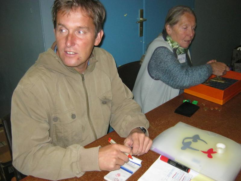 Le nouveau secrétaire de l'AFCECR tient le stand des livres à vendre : Il doit les lire pour pouvoir en expliquer le contenu aux éventuels acheteurs !