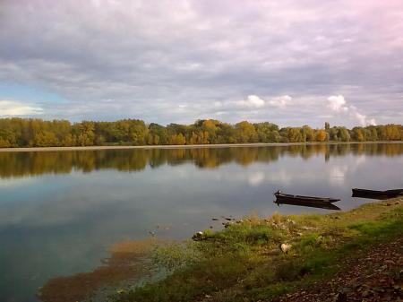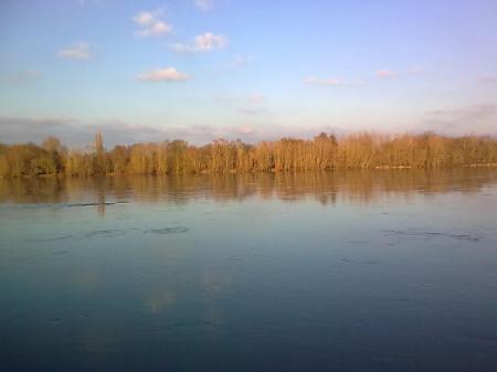 Reflets des nuages de presque été dans l'eau, juste à la confluence entre la Vienne et la Loire.