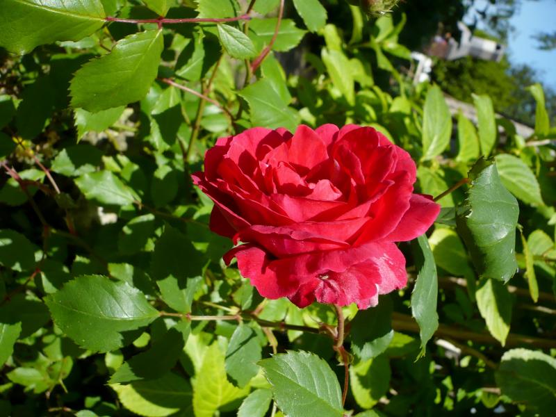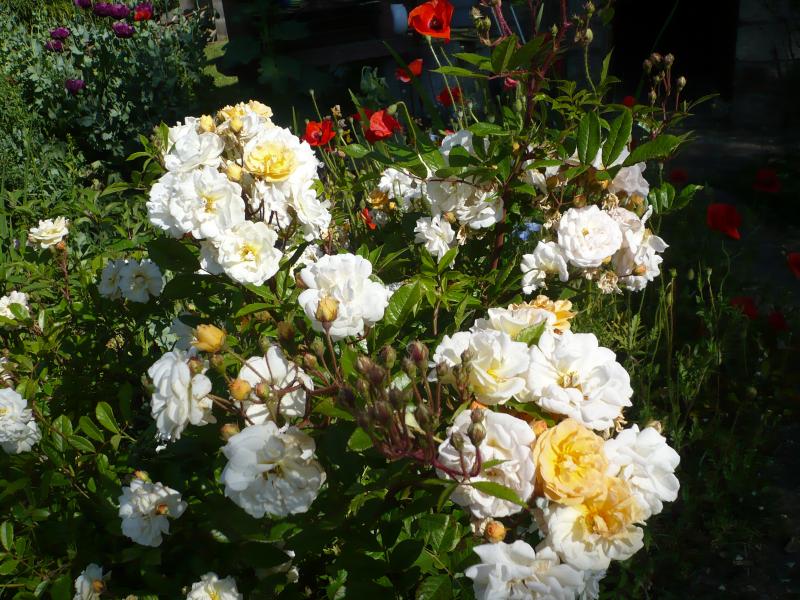 Un rosier grimpant, datant de l'ancienne propriétaire, des graines semées en pensant à Rosalie qui sera toujours dans nos pensées, les anciens laissent souvent leurs traces!