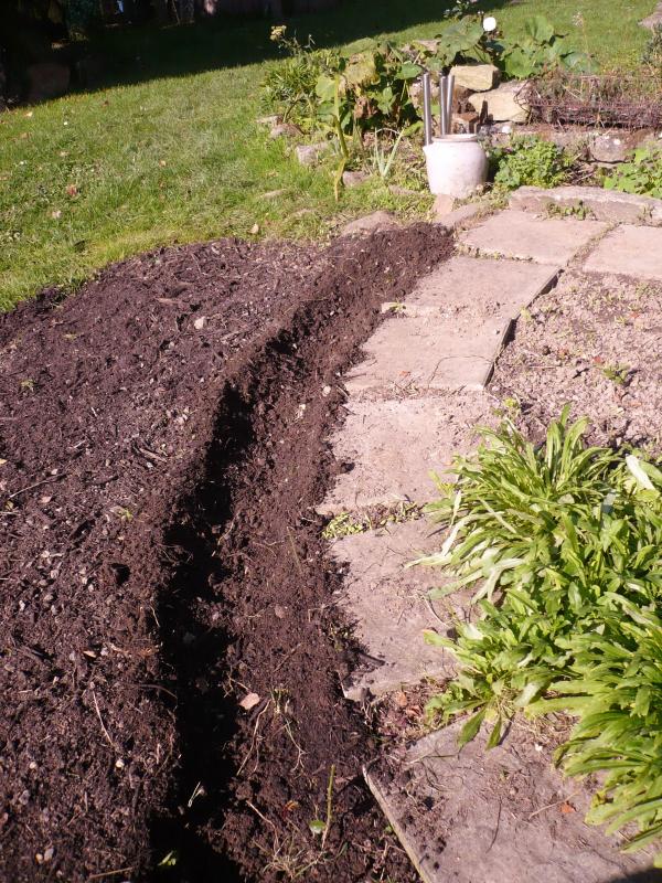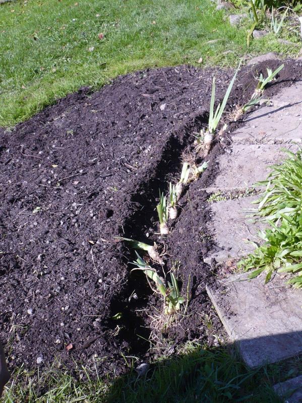 Là autour de la grange, gros nettoyage, puis j'ai coupée et dédoubler des grosses bulbes !