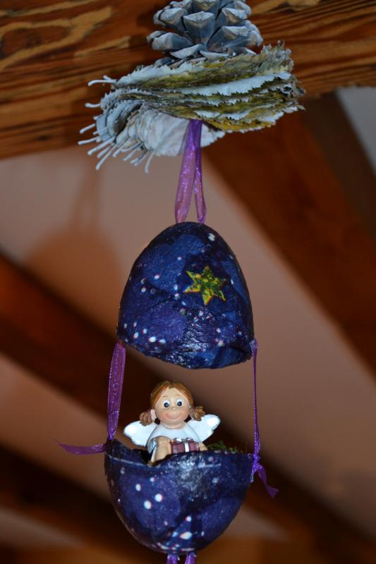 C'est mon cadeau de mon amie Evelyne, elle est magnifique cette suspension !!! pour moi je suis en train de les créer demain scie sauteuse pour couper mes coeurs, j'ai les pommes de pin, mes fagots sont près le résultat sera pas mal et j'ai encore des oeufs à préparer.