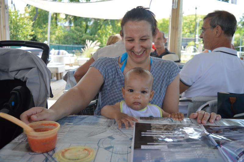 Mila était toute fière de pouvoir participer à la fête à table comme les grands grâce à la chaise haute sortie du grenier et bien décapée par papy