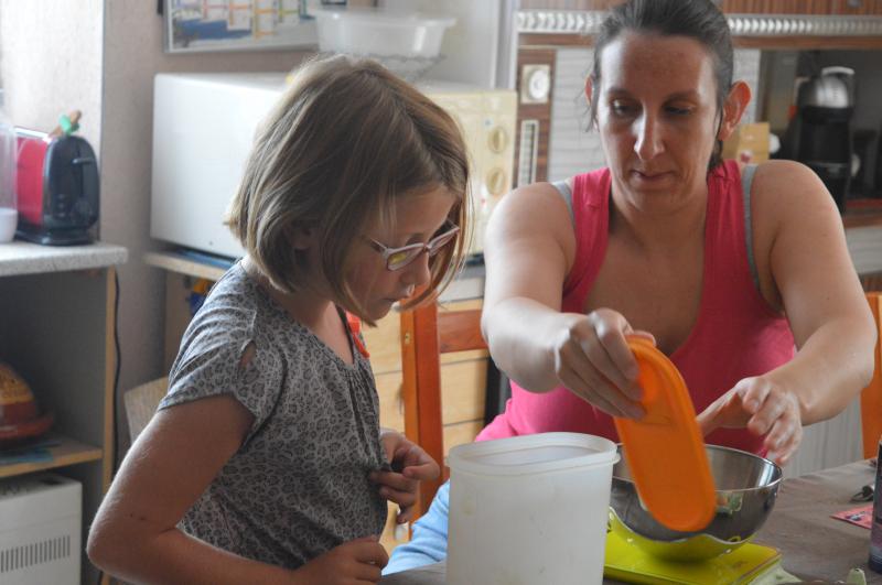 pour l occasion, nous étions invités à l aider à souffler ses bougies après les contrôles sanitaires testés positifs (sauf pour son parrain qui a dû faire une visio!!!!) à la demande de l interessée, ma fille avait donc préparé les gâteaux : des gâteaux basques l un à la crème et l autre à la confiture de cerises