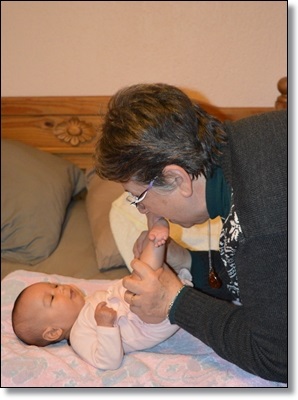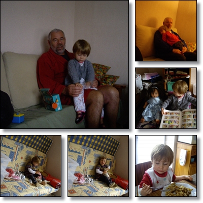 moi avec ma petite fille à caliner !!! et papy a joué avec son petit fils au bowling sur la WII