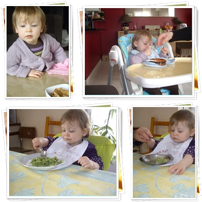 la soupe puisque elle aussi avait une purée brocoli/pommes de terre et escalope de poulet cuite vapeur - un petit morceau de camembert et en dessert une compote faite par Mamy : pomme/banane/kiwi