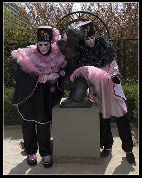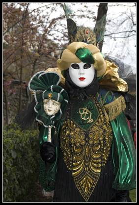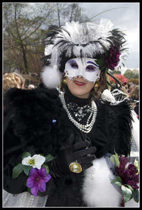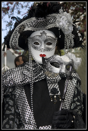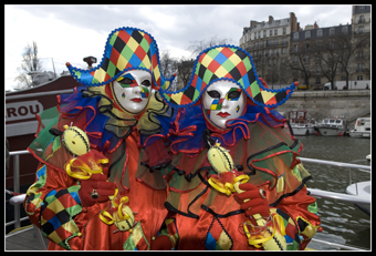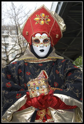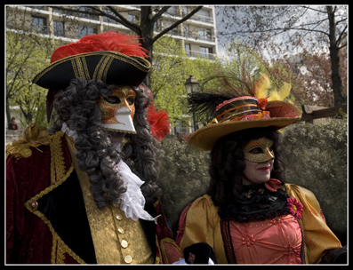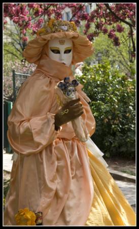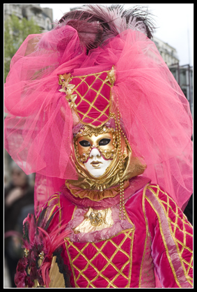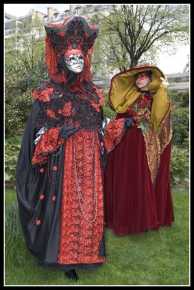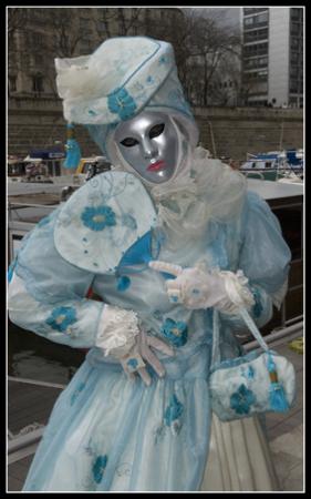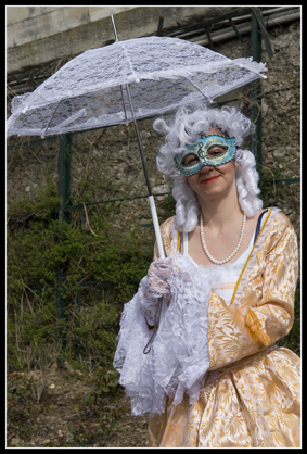 Une de mes amies, ayant été plusieurs fois au carnaval de Venise, décide de se costumer, je l'ai donc aidé à faire sa robe et elle a fait seule son masque et son chapeau. Et puis un jour, elle défile au port de la Bastille et m'invite donc pour faire des photos.