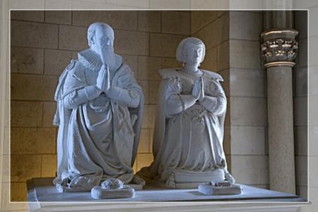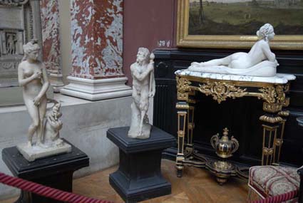 2 statues représentant le Roi sous l'apparence d'un jeune Dieu