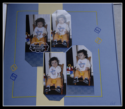 Passionnée de scrap je vous livre une composition que j'ai réalisé de mon petit fils qui à l'habitude de s'endormir à midi sur sa chaise !!! dur dur la vie de BB.