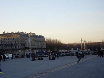 la semaine dernière, j ai fait découvrir une partie de ma "Capitale" à ma belle soeur qui n était jamais venue - nous n avons pas tout fait mais je vous fais profiter de notre visite et des lieux que je n ai pas encore mis sur mon blog - tout d abord nous avions mis la voiture dans un des parcs-auto créés au début des lignes de tram et nous avons donc circulé en tram - celui là était direct depuis Talence jusqu à la fameuse place des Quinconces qui a été mise à l honneur le we dernier grâce au titre de CHAMPIONS DE FRANCE de notre équipe de foot des GIRONDINS DE BORDEAUX - cette place, construite sur l emplacement du Chateau Trompette est la plus vaste d Europe avec ses 12 hectares - son nom lui vient des arbres plantés en quinconces sur les côtés - au milieu et en face à face se situent 2 gigantesques statues en marbre blanc de Montaigne et Montesquieu - au pied de la colonne des Girondins, de chaque côté ont été réinstallés en grande pompe en 1985, les Chevaux Marins qui avaient été cachés pendant l occupation afin de les préserver de la transformation en canons la colonne des Girondins fût élevée en 1895 à la gloire des Girondins (de la révolution) et de la République - D une hauteur de 43 mètres, elle est surmontée d une statue de la Liberté - à son pied on trouve les statuts de la ville de Bordeaux, de la Garonne, de la Dordogne - ainsi que le coq et les emblêmes de la République