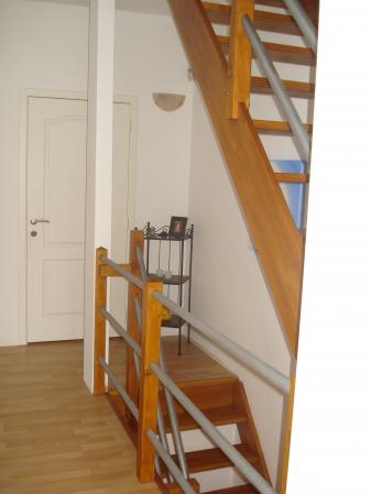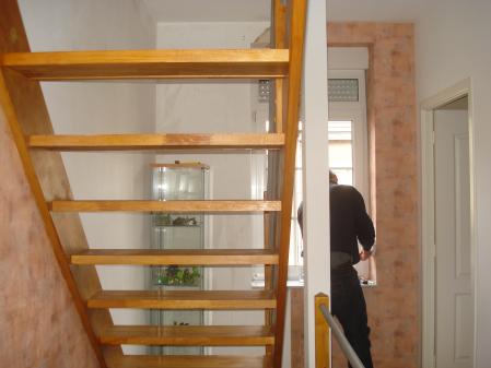 commencont par le début,ici escalier qui va au 1 'étage et vue sur celui qui descend a la cave