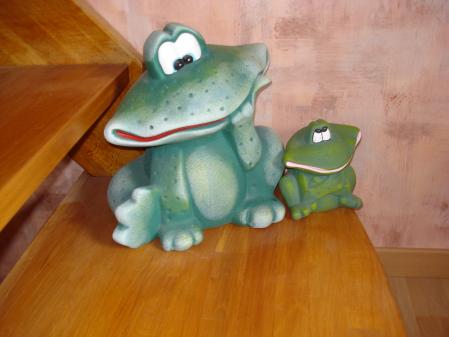 et bien oui je collectionne les grenouilles............un peu difficile a gèrer ai du me calmer car mon pauvre homme n'en voulait pas partout dans la maison...........d'ou me suis limitée a 1 vitrine...........