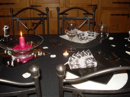 nous avons reçu ce week end et voici ma nouvelle idée table je suis fort dans le noir et une autre couleur en ce moment après le rose voici le vert............quand pensez vous............