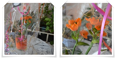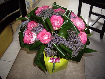 je n avais pas l intention de faire une petite fête mais les enfants sont tous arrivés avec chacun un plat pour me faire une surprise un beau bouquet de fleurs avec son vase, un joli gâteau quelques petits cadeaux "alimentaires" de's petits mots de mes petites filles et voilà une belle journée passée en famille