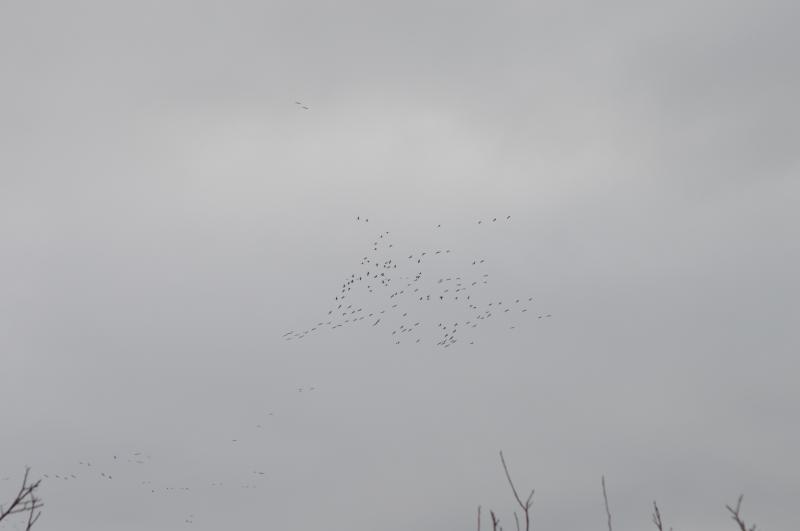 comme je l avais dit la semaine dernière les grues sont remontées vers le Nord, ce qui n empêche pas cette semaine d avoir un petit "coup de froid" (il a même un peu gelé cette nuit) mais cela est bon signe !!!!