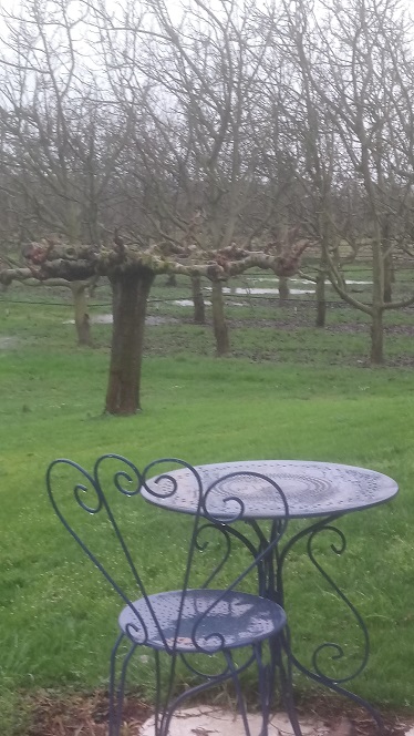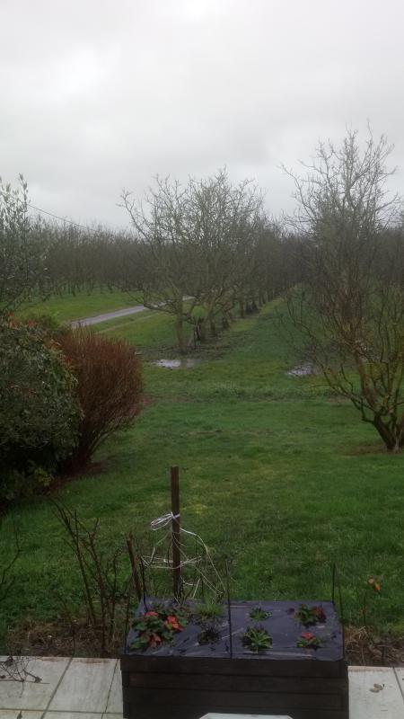 ce matin quelle surprise de se réveiller avec un début de froid - et de constater que les vitres non protégées par les volets étaient toutes embuées - mais maintenant il fait un soleil radieux et sur la terrasse à l' abri du vent il fait déjà bon - ce matin j ai vu les écureuils courrir dans tous les sens pour trouver les dernières noix restées à terre et les feuilles des noyers commencent bien à tomber (on les entend craquer) d ici peu je vais de nouveau apercevoir le paysage autour de la maison car en été tout est caché par les noyers. d ailleurs en voici un pris en photo le 1er printemps de notre arrivée... |