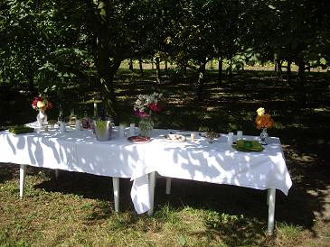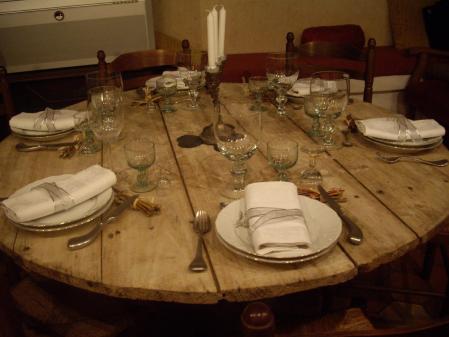 mon gendre avait fait une belle table avec des couronnes de végétaux prises dans son jardin et quelques boules