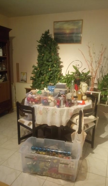 après avoir ramené Alyssa, nous avons commencé à installer le sapin car le Père Noël devait passer chez nous!!!!!!!!!!!!