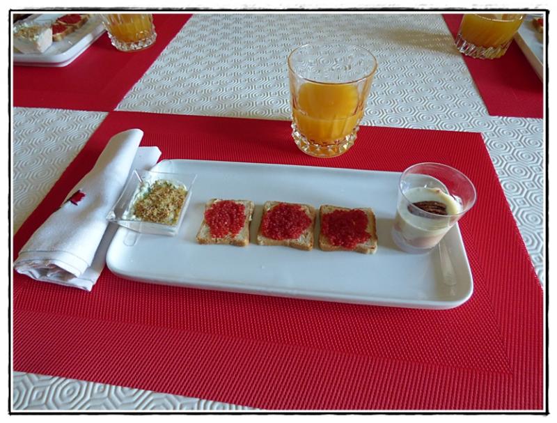 Nous avons pris l'apéritif sur la terrasse. Ce qui est rare chez moi. Souvent trop de vent. Mais ce jour là pas de vent. J'en ai oublié la photo..!! En entrée