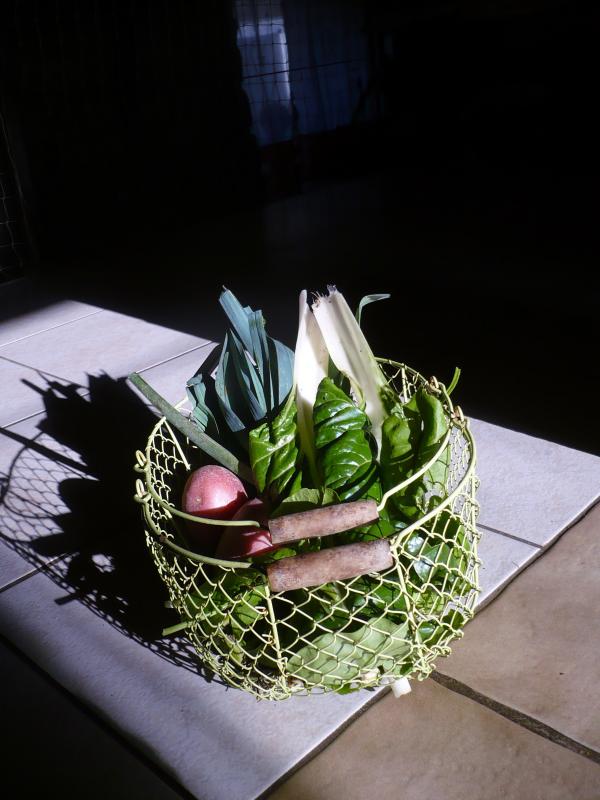 Le même jour, j'ai récoltée au potager, mes sacrés poireaux et les choux!