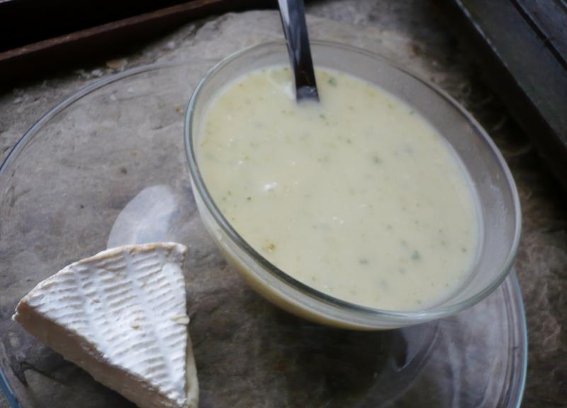 Voulez-vous essayer ? Dans votre panier il vous faudra : un bon camembert (bien fait) 1 kg de courgettes voir plus ! 500 g de pommes de terre 2 cubes + 2 l d'eau éclats d'ail 3 1 échalote 1 poignée de persil sel, poivre (si nécessaire) Tous mes légumes sont du jardin, certains sont congelés.