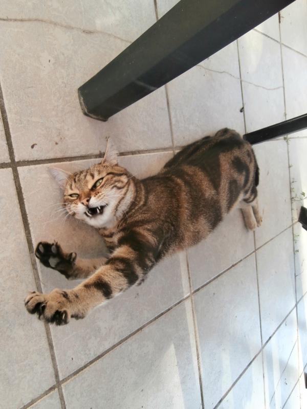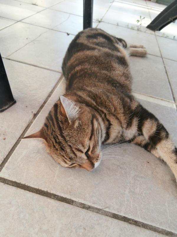 elle n a pas l air mais elle est heureuse!!!!!!!!!!!!!!!!!!!!!! elle a passé sa 1ère nuit à vadrouiller et redécouvrir son terrain de villégiature