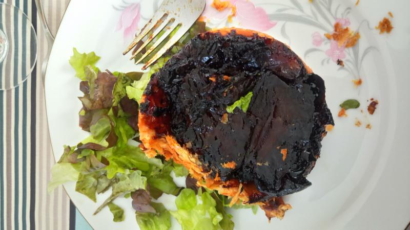 et aussi à Chantal (entre prés et champs) ^pour cette étonnante tarte tatin magrets de canard, pommes et échalottes qui a eu un franc succès auprès de ma fille et mon gendre - bon la présentation n était pas aussi belle que la sienne mais qu importe le gôut était là