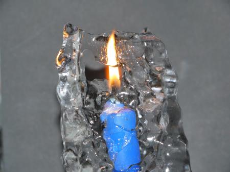 Découpage du haut de la bouteille, et il en est sorti une sculpture enfin plutot un moulage de glace. |