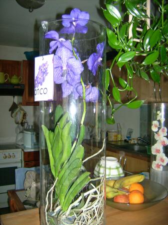 Viens voir ma surprise !!! et moi ??? tu m'as dit que tu adorais les orchidées heu oui (zab perplexe) viens voir ma surprise Mais tu es fou.. completement fin fou !! ce n'était pas une simple phaléno la posée sagement à l'arrière de la voiture mais bien une Wanda bleue, pour moi la reine des plus belles J'ai failli mainte et maintes fois m'en offrir une mais connaissant le prix de ces petits bijoux je me suis toujours refusée cet achat et la .. grand coup sur la tete quelqu'un pour moi à fait ce geste de m'offrir cette Wanda bleue .. J'en ai les larmes aux yeux d'y penser regarder la comme elle est belle ![]() j'ai essayé de la prrende au mieux pour en garder un éternel souvenir