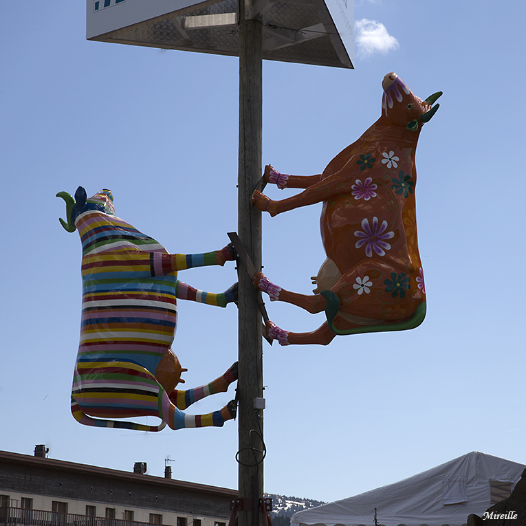 J'ai bien aimé l'enseigne d'un magasin de mobilier montagnard..... Les vaches grimpeuses, j'en ai déjà rencontré ! ICI ! Une remarque: : ces vaches sont grandeur nature !!!