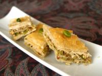 Posez la deuxième couche de fruits secs et ajoutez-y les 5 dernières couches de feuilles de filo. Versez le reste de beurre sur le dessus et découpez-en des losanges.