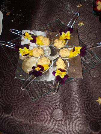 cocktail:un peu de poire william dans la coupe,ajoutez dessus un peu de crémant et un petit morceau de poire........mich a adoré!!! |