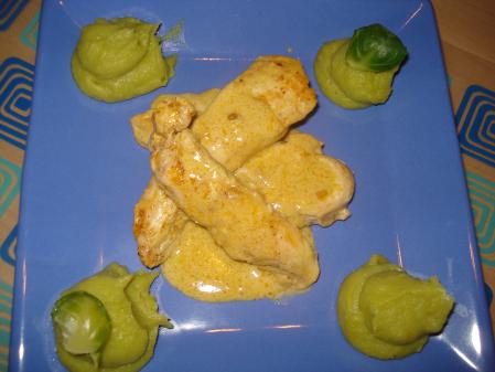 Ingrédients pour 5pers:+- 1kg de filet de sébaste-200gr de pts pois surgelés-1bouquet de brocoli(+-500gr)-200gr de mais en boite-2oranges-2dl de muscat d'Alsace-2dl de crème fraiche-un peu d'épices colombo-sel-poivre-liant pour sauce instantané. Porter a ébullition une casserole d'eau légèrement salée et faire cuire les petits pois 5min,ajouter ensuite les petits bouquets de brocoli et poursuivre la cuisson encore 5min.Egoutter.Penser également a égoutter le mais.Presser les 2 oranges(il faut +- 2dl de jus)Pour ma cuisson vu que javais 1kg de poisson j'ai pris une grande poele a paella.y mettre le jus d'orange,le muscat et la crème fraiche ou j'ai également mis un peu d'épices colombo et porter a ébullition,ensuite ajouter les filets de sébaste ,saler,poivrer et laisser mijoter 10 a 15 min.selon la grosseur des filets.Retirer les filets et les garder au chaud ,ajouter les légumes et le mais et laisser mijoter 5min ensuite lier votre sauce,rectifier l'assaisonnement et remettre vos filets dans la sauce .ici j'ai servi les filets avec du riz dans laquelle j'ai mis du persil frais,de la ciboulette,des pts dés de tomate et des pts dés de concombre(j'ai improvisé ce que j'ai mis dans le riz et javoue bien avoir eu peur du résultat en accompagnement et bien surprise surprise!!!tous ont apprécié!!) |