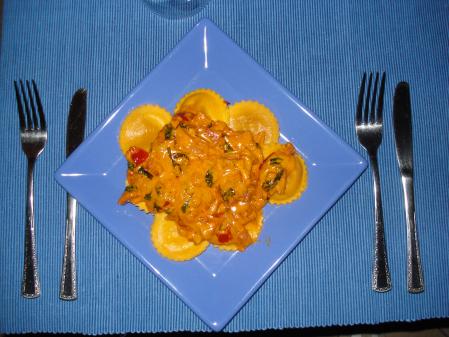 ingrédients pour 2pers: 500gr de champignons-plus ou moins 8tomates sèchées marinées-80gr de fromage frais a l'ail et aux fines herbes-un peu de persil-sel-poivre -1dl de crème fraiche. Coupez les champignons en lamelles,coupez les tomates sèchées en lanières et hachez finement votre persil. Dans une casserole faites chauffer 2 C.à soupe de marinade de vos tomates sèchées(elles s'achètent dans des raviers dans laquelle elles sont marinées).Mettez y les champignons,ajoutez les lanières de tomates et faites revenir quelques minutes en remuant.Couvrez et laissez cuire une dizaine de minutes.Ajoutez le persil haché,le fromage aux fines herbes et votre crème fraiche,salez et poivrez et voici votre sauce!! |