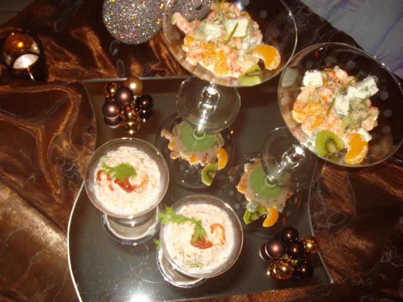 Assiette froide composée de tomates aux crevettes grises,verrine mousse de thon....(.la recette se trouve en détail ci dessous)céleri rapé avec des pts morceaux de pommes et mélangé avec un peu de mayonnaise et assaisonné bien sur a votre idée.