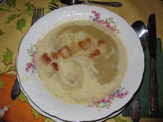 -- Il est appelé endive ailleurs -- Ingrédients : - 2 kg de chicons - le blanc de 2 ou 3 poireaux - 3 c à s de farine - 2 l de bouillon de volaille - 120 g de margarine - 400 g de crème fraîche - sel & poivre Préparation : * Nettoyez les chicons et enlevez les petits cônes amers à la base. * Nettoyez les poireaux. * Coupez les chicons et les poireaux en lamelles et faites-les revenir dans la margarine. * Saupoudrez de farine (tamisée) et mélangez énergiquement. * Laissez cuire un peu. * Arrosez un peu à la fois les légumes du bouillon chaud tout en remuant. * Salez, poivrez et faites cuire. * Passez la soupe au mixer. * Ajoutez la crème avant de servir. Pour les fêtes, vous pouvez mettre dans les assiettes ou la soupière : -- Vous pouvez retrouver d'autres recettes de Belgique : via ce lien -- |