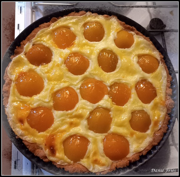 ingrédients: - 1 boîte 4/4 d'abricots au naturel (égoutttés) - ou 500gr d'abricots frais - 100gr de sucre - 1 sachet de sucre vanillé - 75 gr farine - 60 g maïséna - 1 c à c de levure chimique - 125gr beurre - 2 oeufs - 1 pincée de sel - 2 dosettes de caramel Beurrez simplement le tour de votre moule, pas le fond, puis nappez le fond avec le caramel. Répartir les oreillons d'abricots (l'arrondi au fond côté moule) Dans une terrine mélangez les oeufs entiers et les sucres jusqu'à ce que le mélange blanchisse et devienne mousseux Ajoutez le beurre ramolli, la maïséna, la farine, la levure et le sel, bien mélanger. Versez la pâte sur les fruits Cuire à four moyen th 5, 30 à 40 mn (en fonction de votre four, vous le connaissez !) Conseils d'amie! - Si vous faites vous même le caramel, c'est meilleur, dans ce cas ne le faites pas trop cuire, il doit être clair. - Pensez à mettre une très petite cuillère à café de vinaigre dans votre sucre, pour que le caramel reste plus longtemps liquide afin de mieux naper votre moule. - Ne vous inquiètez pas des trous entre les abricots, lorsque la pâte cuit elle s'infiltre partout et bouche tout les trous. |