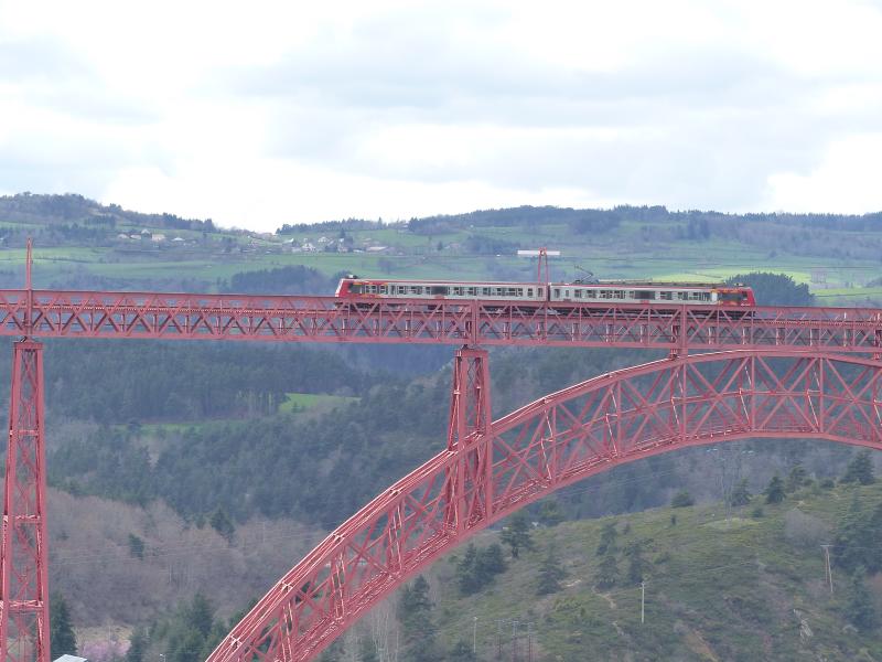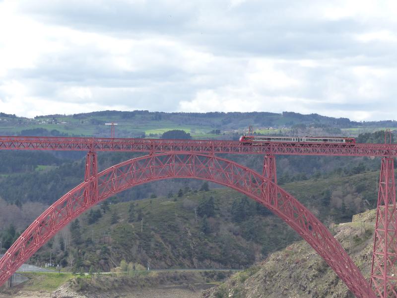 Le viaduc de Garabit est un viaduc ferroviaire français,ouvrage d'art de la ligne de Béziers à Neussargues (dite aussi ligne des Causses),permettant le franchissement des gorges de la Truyère.Il est situé sur le territoire de la commune de Ruynes-en-Margeride dans le département du Cantal en région Auvergne-Rhône-Alpes. Ce viaduc est un projet de l'ingénieur des ponts et chaussées Léon Boyer qui en a confié la finalisation et la réalisation à Gustave Eiffel et sa société. Le chantier de sa construction ouvert en janvier 1880 se termine en septembre 1884 et sa mise en service est effectuée en 1888 par la Compagnie des chemins de fer du Midi et du Canal latéral à la Garonne concessionnaire de la ligne. Cet ambitieux ouvrage métallique, long de 565 m, qui culmine à 122 m au-dessus de la rivière, est alors le « plus haut viaduc du monde Quelques 125 ans plus tard, l’œuvre rayonne de son rouge poinsettia au dessus de la Truyère et brille de mille feux, la nuit, tel un décor des contes des mille et une nuits. Cet édifice, doté d’une arche monumentale, a été le plus grand ouvrage métallique du monde. Il fut aussi et surtout un véritable laboratoire en vue de la construction de la Tour Eiffel. Situé dans l’est du Cantal à 1 heure au sud de Clermont-Ferrand, l’environnement touristique de Garabit est exceptionnel : de la Margeride aux portes de l’Aubrac, de Saint-Flour, Pays d’art et d’histoire, aux gorges profondes de la Truyère, c’est un lieu idéal de découverte et de séjour. |