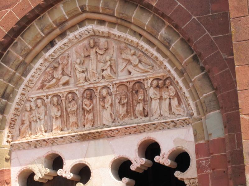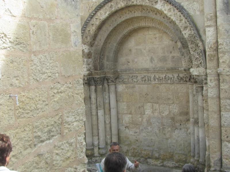 la seule partie qui a étée épargnée de la Collégiale qui f^t détruite en 1562 lors des guerres de religion. elle estornée d'arcades a voussures et de chapiteaux finiment sculptès.son décor etait là,pour émouvoir et ensèigner fidéles et pélerins sur le chemin de Saint-Jacques de Compostelle.l'église fut rebatie au début du 18eme siécle. classée monument histrorique