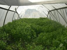 Ainsi, la menthe! Celle qui pousse ici n'est pas excellente, nous cultivons donc nous-mêmes celle dont nous nous servons abondamment pour les plats méditerranéens et proche-orientaux. A la fin de l'hiver, elle démarre sous tunnel en film plastique, et nous la découvrons quand il cesse de geler! |