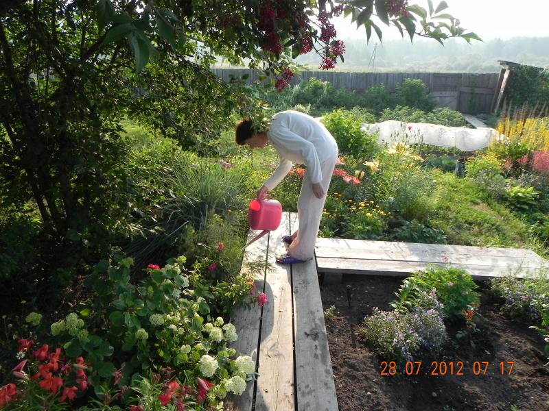 Bonsoir a tous. Nos vacances sont finis et aujourd*hui Genia travaille deja. Je vous propose quelques photos de notre datcha si bien aimee. C*est notre lilas, notre belle! Le soir.Il faut tout arroser.