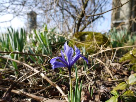 Bien sur, en ce moment beaucoup de perceneige et cette fleur qui je pense est un iris bleu mais il est si petit à raz de terre qu'il fut bien difficile à photographier et le nid que j'avais pris, le revoici photographier par mon homme