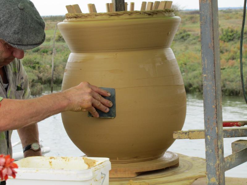 pas (ce qui se comprend) potier qui commence une poterie a la ficelle.