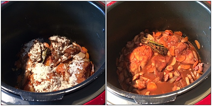 J'ai préparé cette recette au Cookéo mais il est possible de la préparer dans une cocotte avec juste un temps de cuisson plus long par rapport au Cookéo. 1 - Essuyer les morceaux de sanglier, les fariner et les faire revenir dans le Cookéo en mode "Dorrer" avec de l'huile d'olive et un peu de beurre (cela évite les éclaboussures). Les saupoudrer de paprika. Puis, réserver les morceaux.