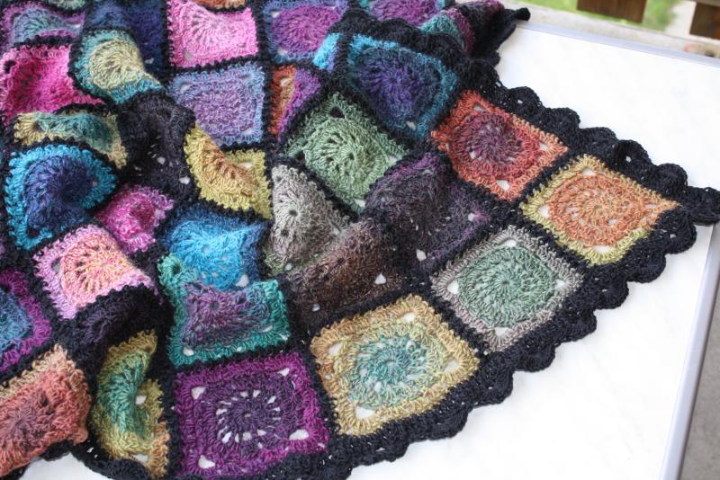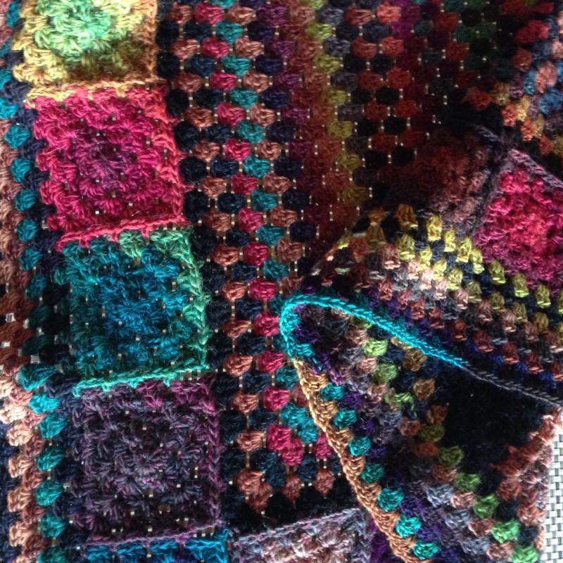 Je m'amuse énormément en crochetant une couverture à ma façon .....avec des restes divers de laine + quelques pelotes de Delight de chez Drops.