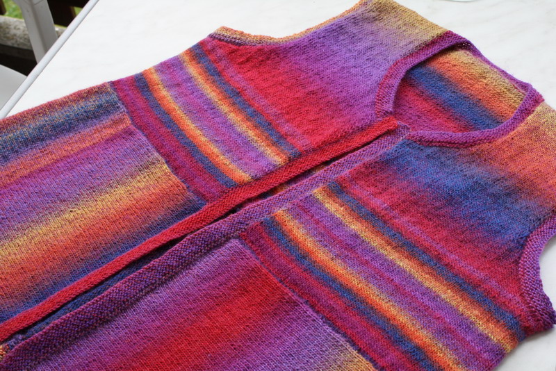 Sans manches et sans bordure ! Il paraît que les côtes font grand'mère alors...! Réalisé en laine pour chaussette et point andalous.